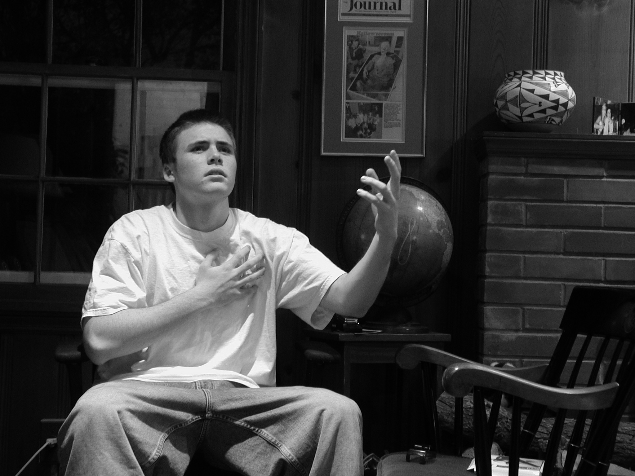 1) He is talented. The night I rolled into town he showed me some of the video shorts he’s made with his iMac/DV camera setup. They were pretty damn good, too. One of them, a long chase scene with a Tarantino/Scorcese vibe, had just been accepted into a new film festival for D.C.-area high school kids. And he’s getting an “A” in his screenwriting class at acclaimed H-B Woodlawn High School. Look out, Hollywood!